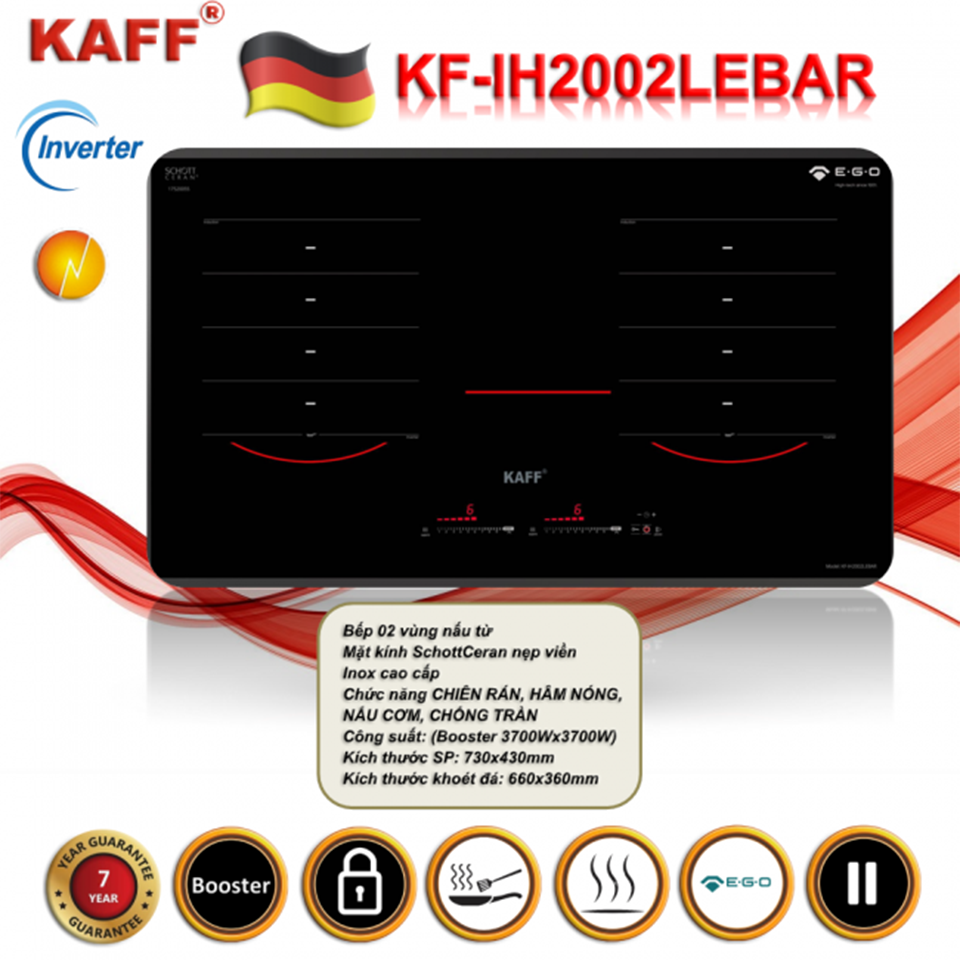 • Công suất bếp: 2300Wx2300W (Booster 3700W x 3700W)