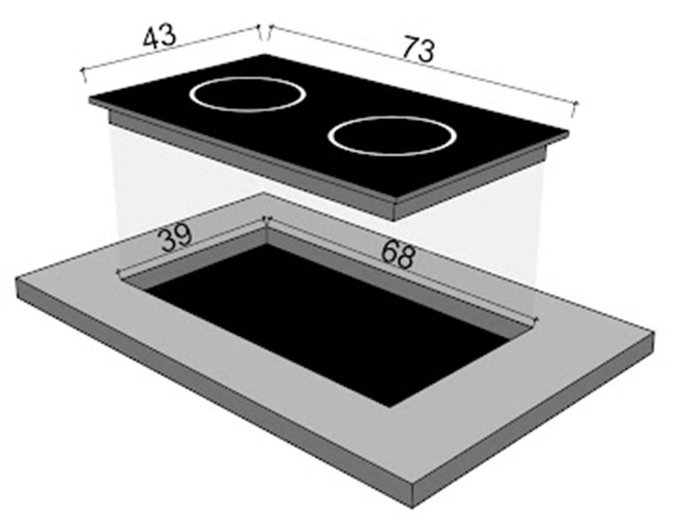 - Kích thước khoét đá: 690x390cm