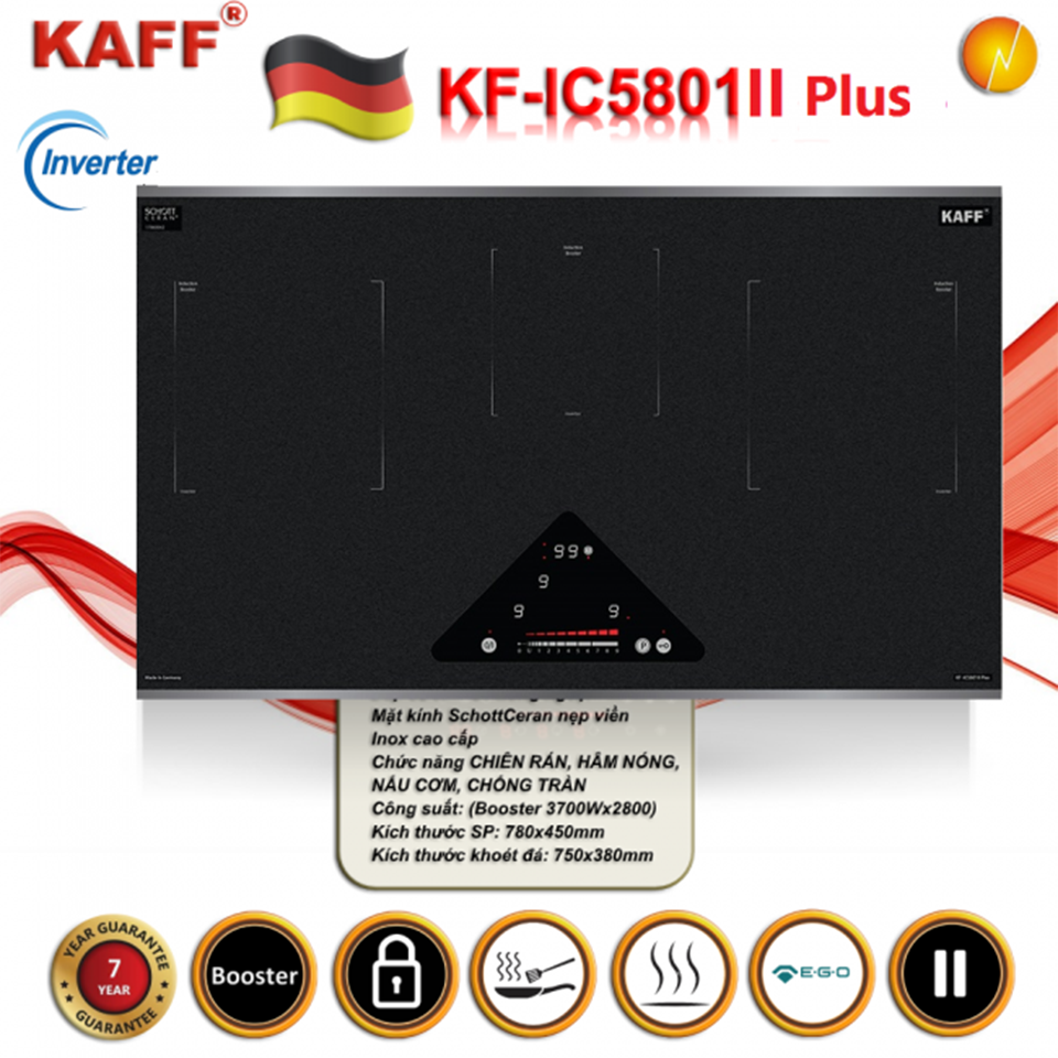• Công suất bếp: 2300W x 1500W x 2300W (Booster 3700Wx2800Wx3700W)