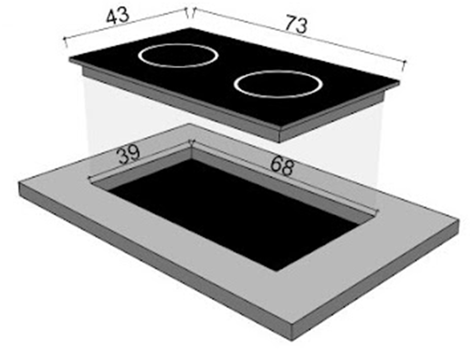 - Kích thước khoét đá: 690x390cm