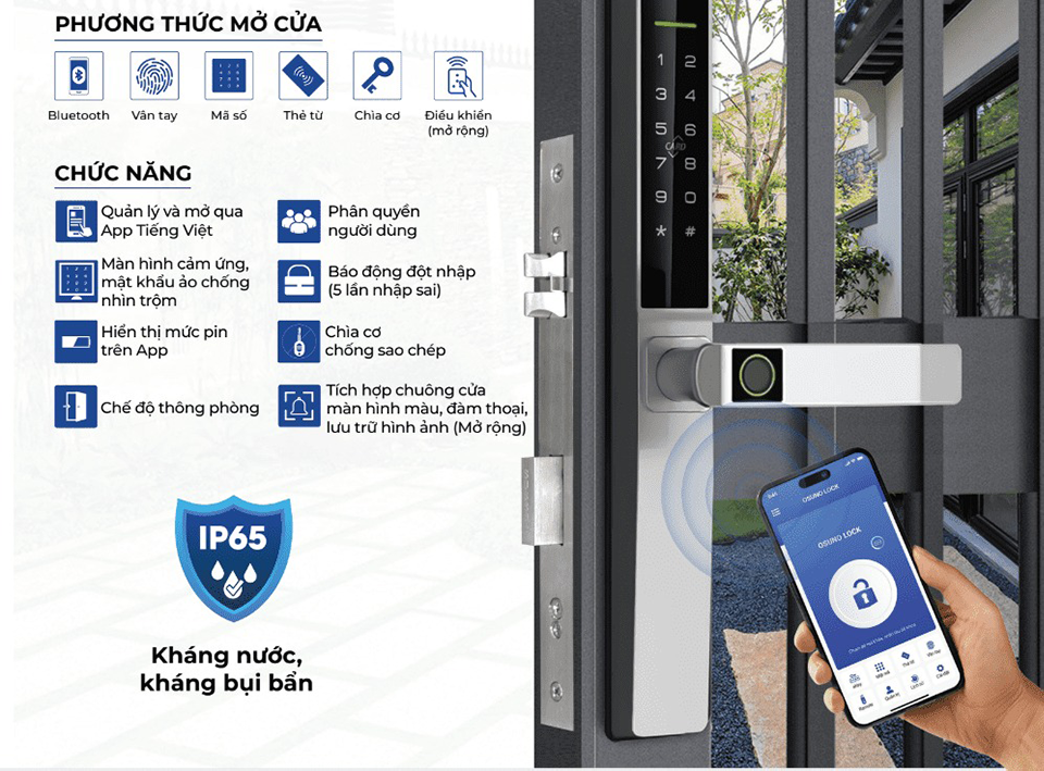 Khóa biệt thự OSN-3326 được tích hợp 5 tính năng mở khóa hữu dụng, tiện lợi:
