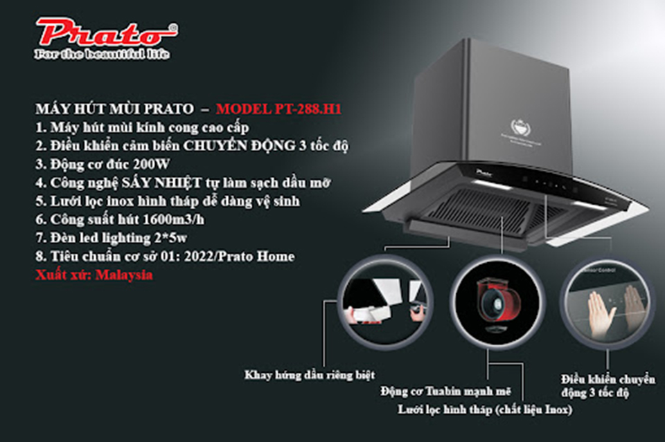 Máy Hút Mùi Kính Cong PT-288.H1